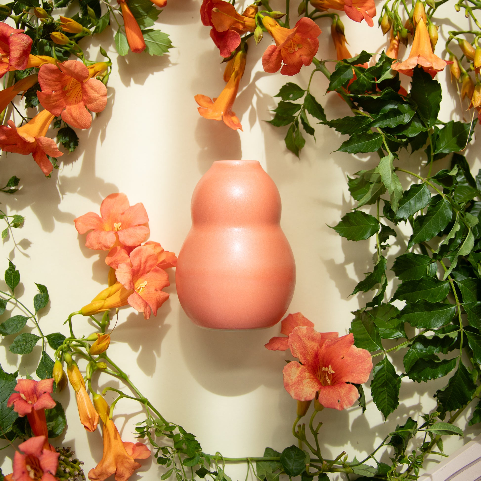 The refined shape of our Pear Vase is inspired by the traditional Chinese gourd vessel. Its satin matte finish emphasizes the subtle variations inherent to handmade pottery, turning any bouquet into a work of art.